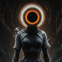 a sense of movement and energy, as if she is being pulled into another dimension or reality. Overall, the image suggests that the woman is a powerful and mysterious figure who is connected to forces beyond our understanding. She may be a guardian or protector of some kind, tasked with keeping balance in the universe. Alternatively, she could be a symbol of chaos and destruction, bringing about change and transformation through her presence.