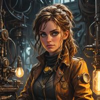 laboratory setting, complete with metalwork equipment and other industrial components. The overall atmosphere of the image suggests that the girl is engaged in some kind of technical or scientific activity, possibly working on a project or conducting an experiment.