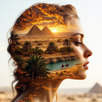 ethereal beauty and wonder, inviting the viewer to immerse themselves in the mystical atmosphere of ancient Egypt.