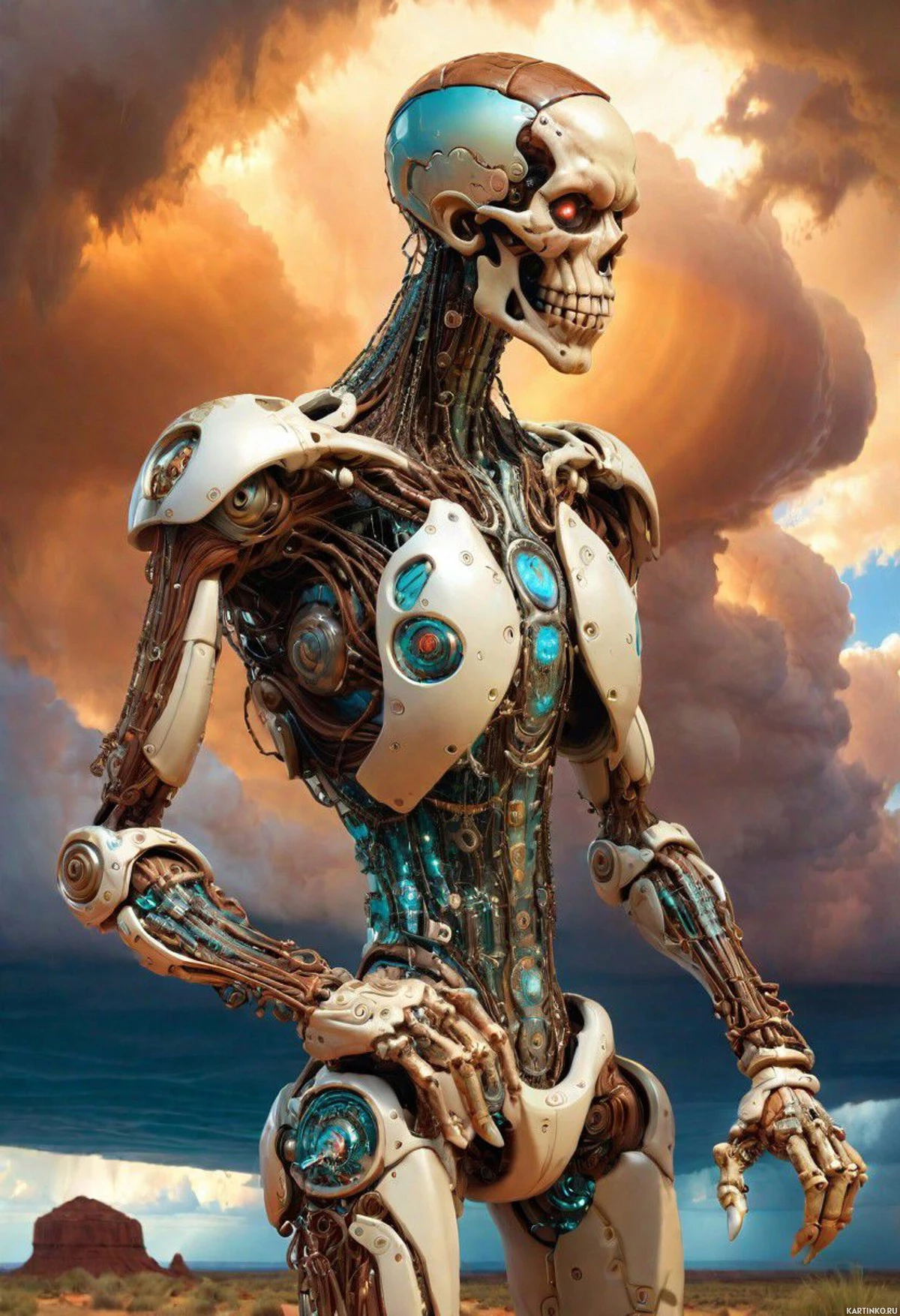 blue eyes, and pointed ears. She has long, wavy
