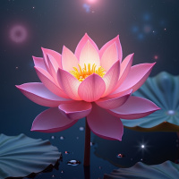 lotus flower as its central focus. The flower is prominently displayed in the foreground, with its