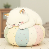 a serene scene featuring a white cat peacefully sleeping on top of an oversized Easter egg. The cat, positioned centrally in the frame, is curled up with its head resting on its