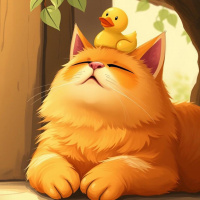 tabby cat with its eyes closed, seemingly asleep or in a relaxed state. On top of the cat's head is a yellow