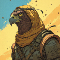 bird character, specifically a falcon. This character is depicted with human-like features, including