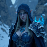 a female character dressed in fantasy armor, often associated with a "blonde" appearance. She has pointed ears, which suggests she is an elf or perhaps related to an elf-like species within the context of this