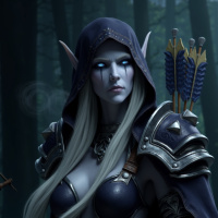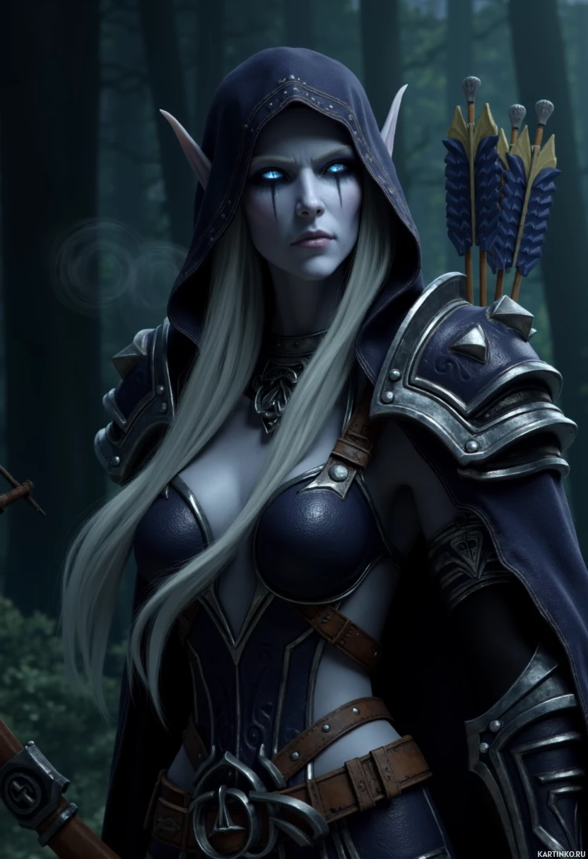 hooded figure typical of her archetype within the Warcraft universe. Her attire consists of