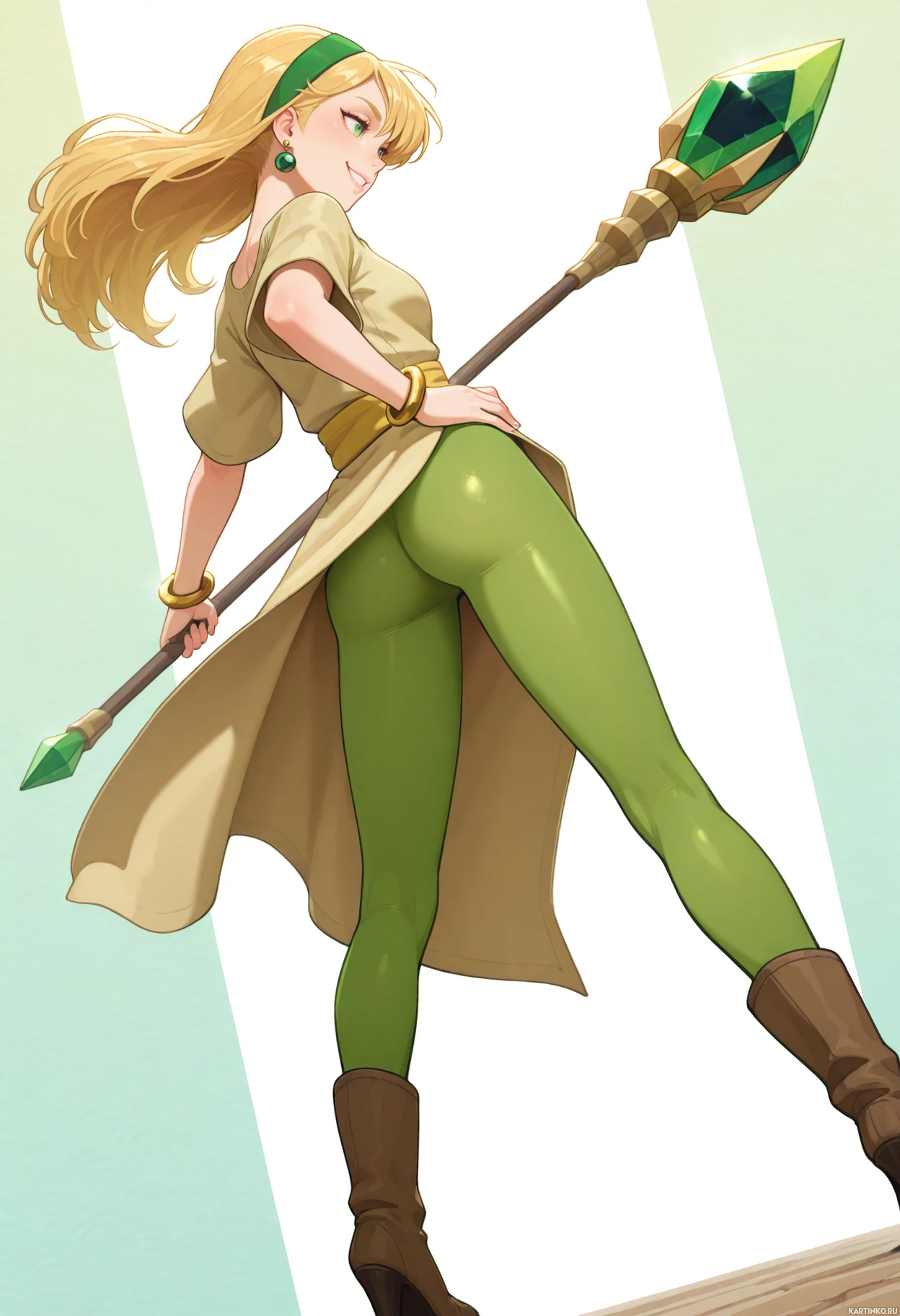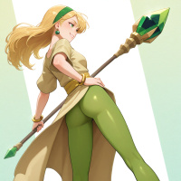 a green jewel on top, which could imply a role related to magic or fantasy. The overall feel of the image is vibrant and whimsical, fitting within the typical style found in