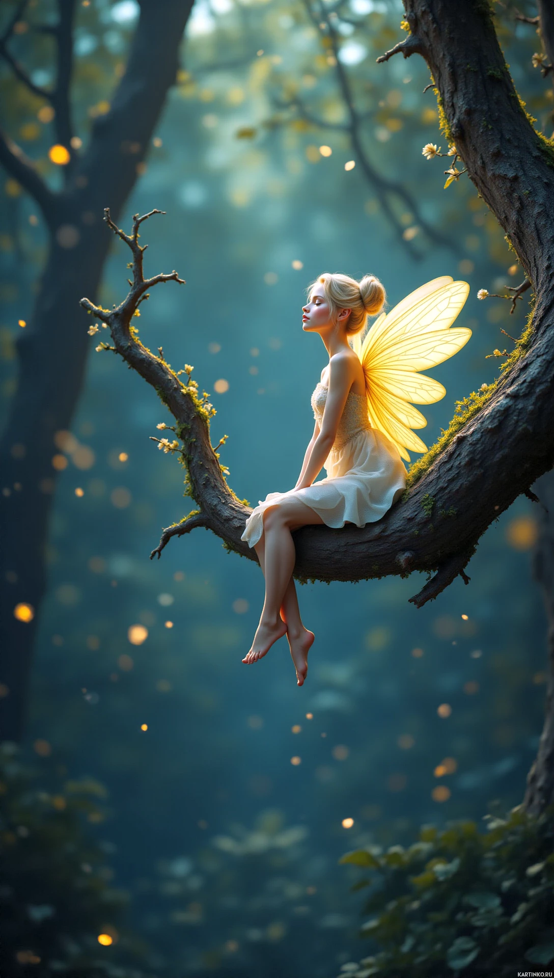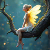 In this picture, there is a fairy sitting on