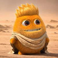In this image, there is a cute and cheerful creature that resembles a monkey with