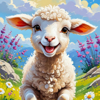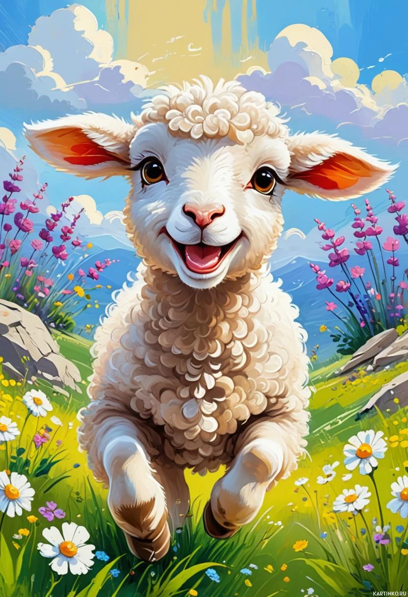 the cheerful atmosphere of the image. The sheep has fluffy