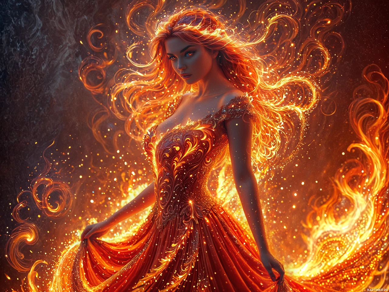 девушки | Фотки и рисунки с девушкой | Girls | Королева небесного пламени в величественном одеянии