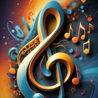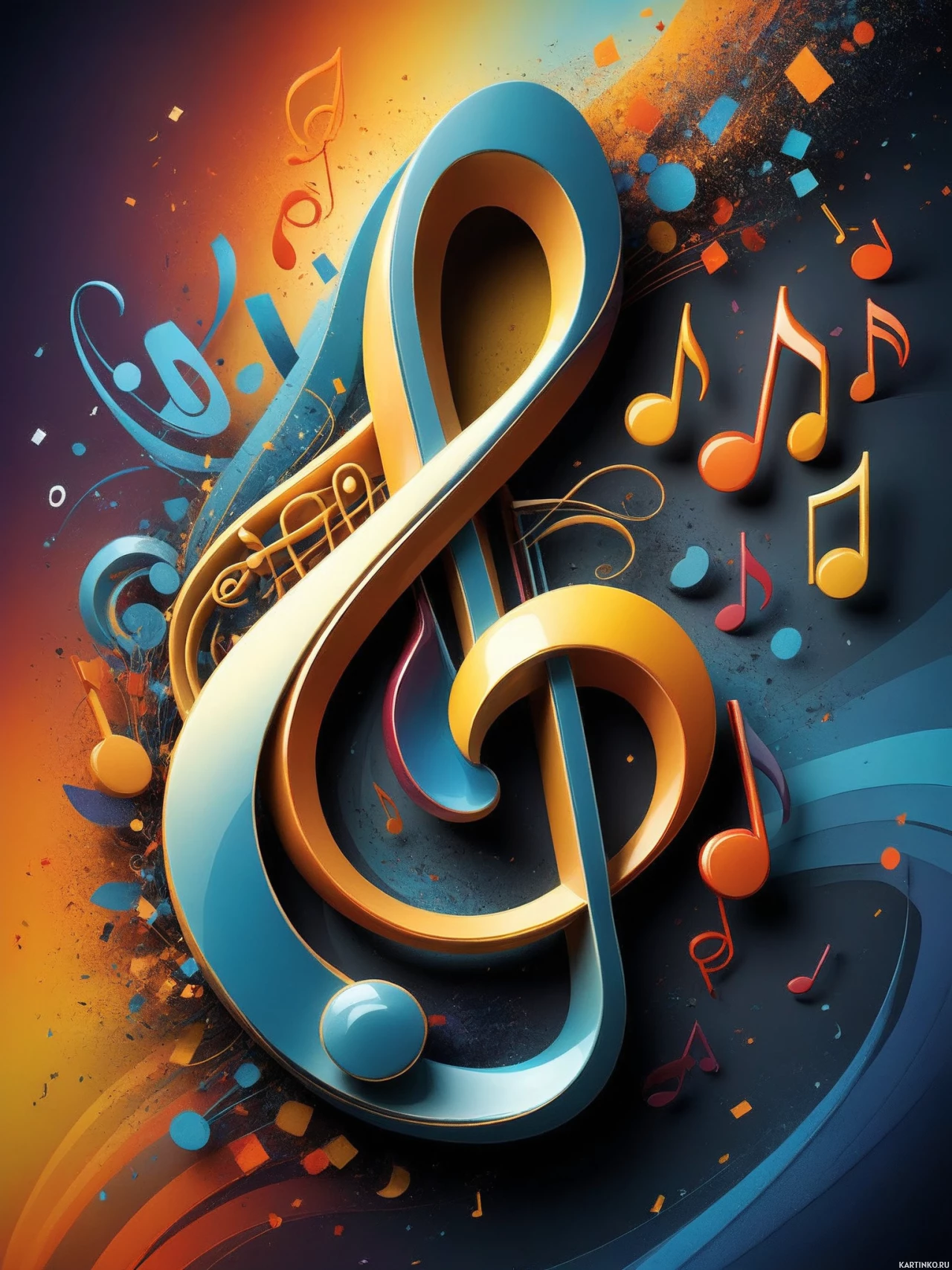 vibrant colors with abstract shapes that add to the energetic feel of the image. The overall composition conveys the concept of music and its harmony, which is reinforced by the use of
