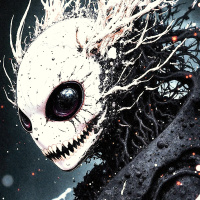 The image depicts a character that appears to be a monster. It has a pale, sickly-looking face with dark eyes and