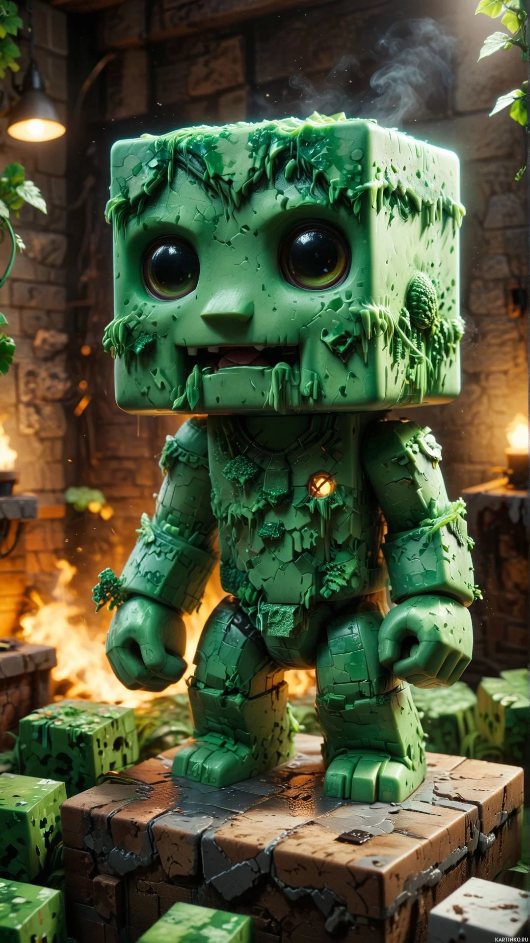 The image depicts a three-dimensional figure that resembles a blocky, pixelated character from