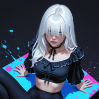 white hair. She is depicted in an exaggerated, stylized manner that is common in certain