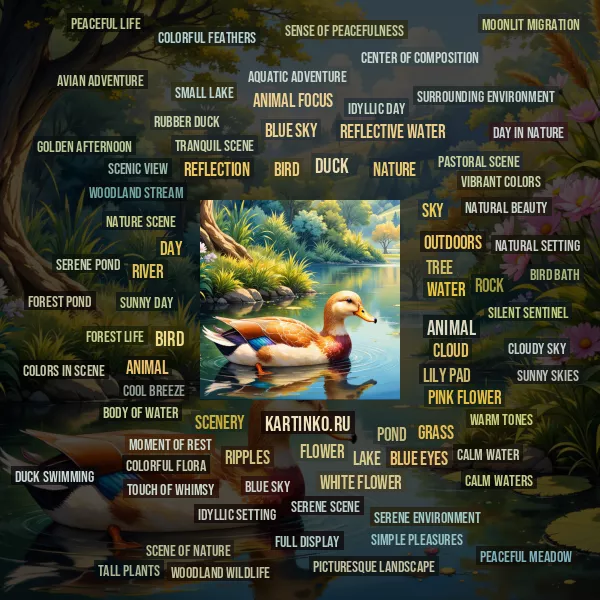 a body of water that appears to be a pond or small lake. The duck is facing towards the viewer, displaying its