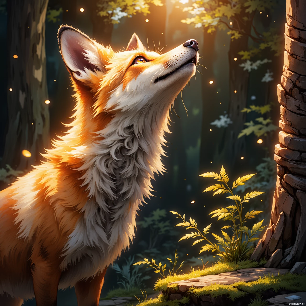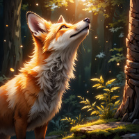 The image depicts a stylized illustration of a fox standing in