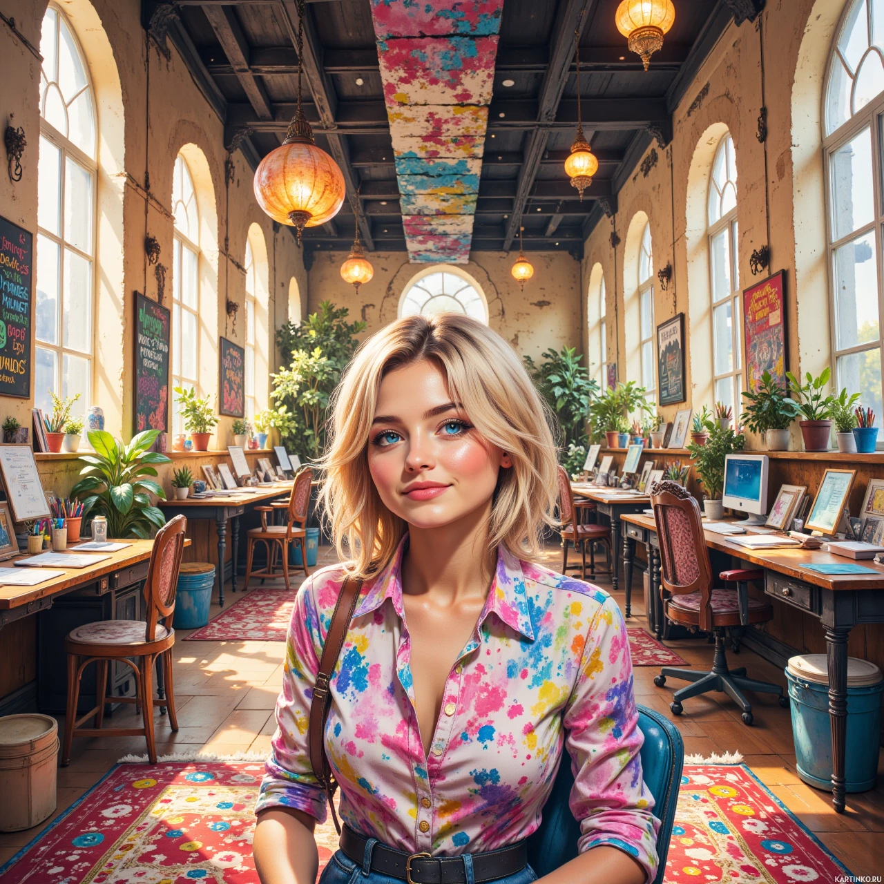 Блондинка с голубыми глазами сидит в помещении Картинки с такими же тегами