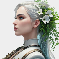 a protective garment on one shoulder, but without additional context, it's not possible to determine the specific nature of the character or their role within the game they are from. The overall composition of the image is striking, with the floral crown adding an element of fantasy and possibly symbolizing some sort of power or status within the narrative that this character belongs to.