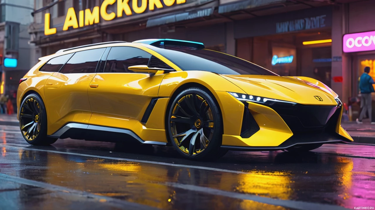 The image depicts a yellow Lamborghini