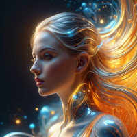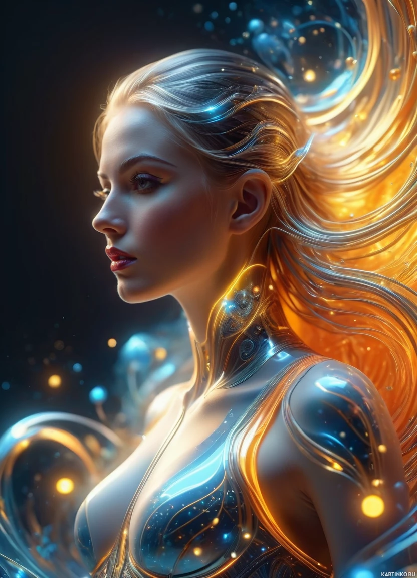 The image portrays a woman with an ethereal and otherworldly appearance. She has