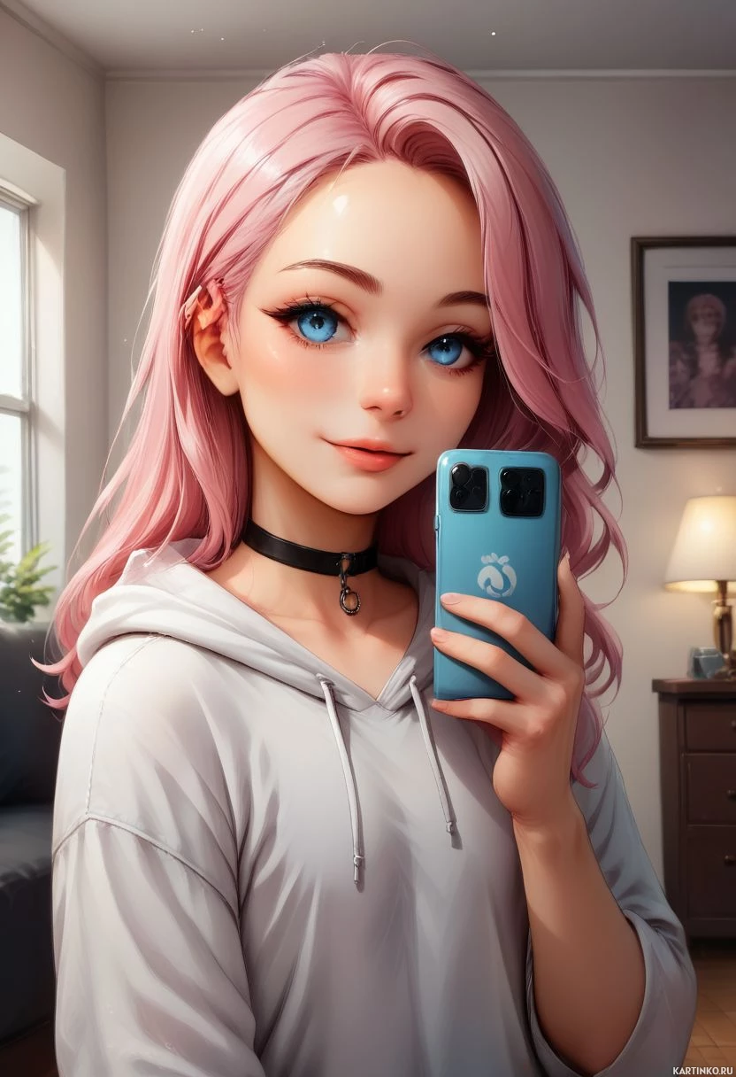 Девушка с розовыми волосами и телефон в руках Больше картинок по схожим темам