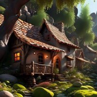 wooden accents and decorative fences. The architecture suggests a rustic charm, typical of a village where
