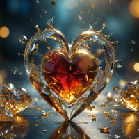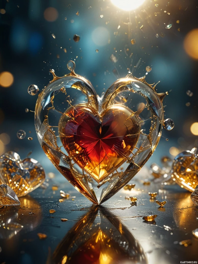 molten gold. This composition gives the impression that the heart is transforming into a molten substance, perhaps symbolizing energy, passion, or