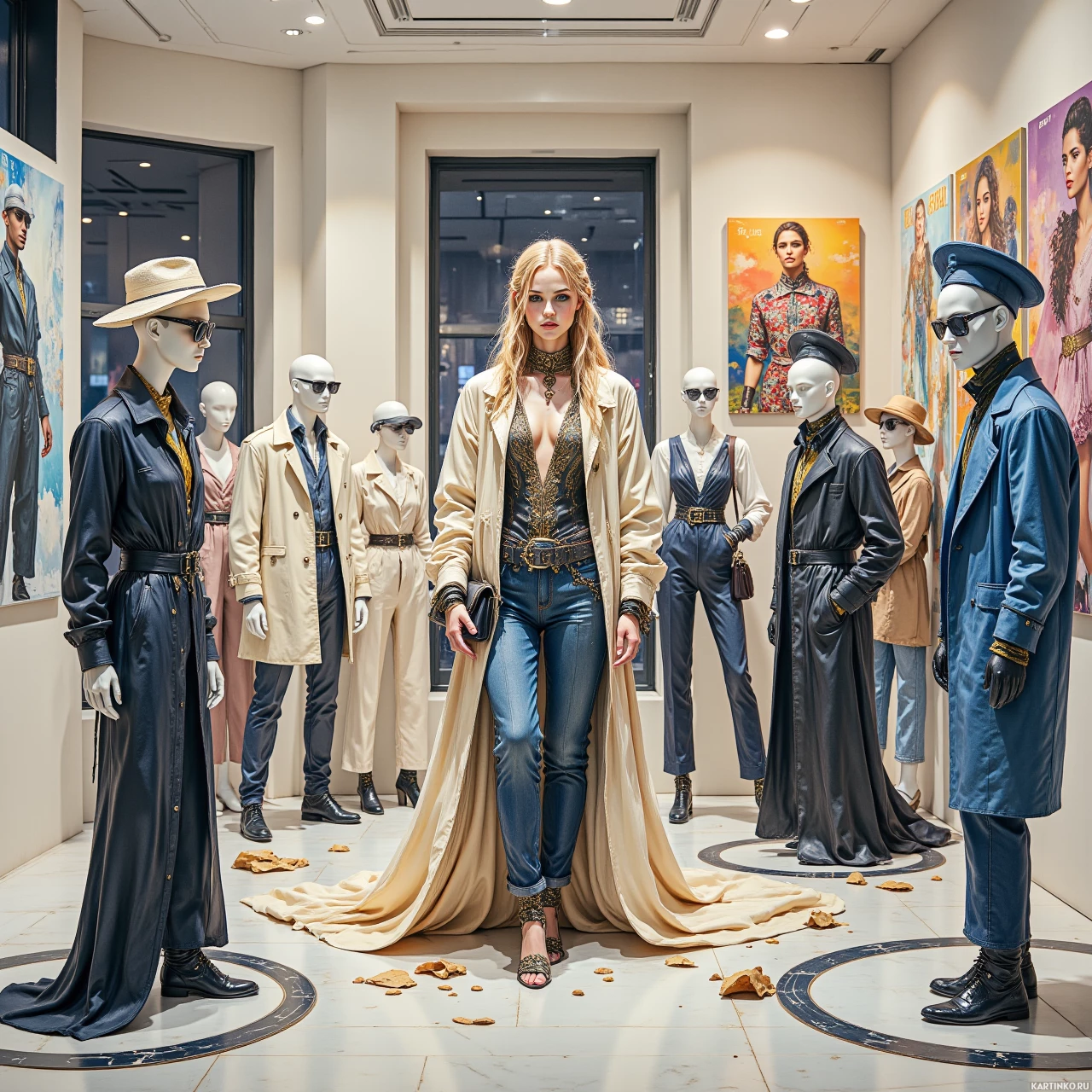 На этой картинке мужчина стоит в центре лесной поляны, окруженный высокими деревьями с густой зеленой листвой. На нём куртка и брюки бежевого цвета, сливающиеся с окружающей природой. Выражение его лица серьезное, взгляд направлен в сторону. На заднем плане видна тропинка, уходящая вглубь леса, манящая к новым открытиям.