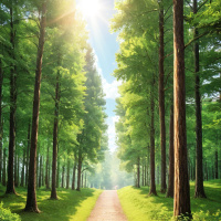 dappled light onto the ground below. The overall mood of the picture is peaceful and inviting, evoking a sense of tranquility typical of