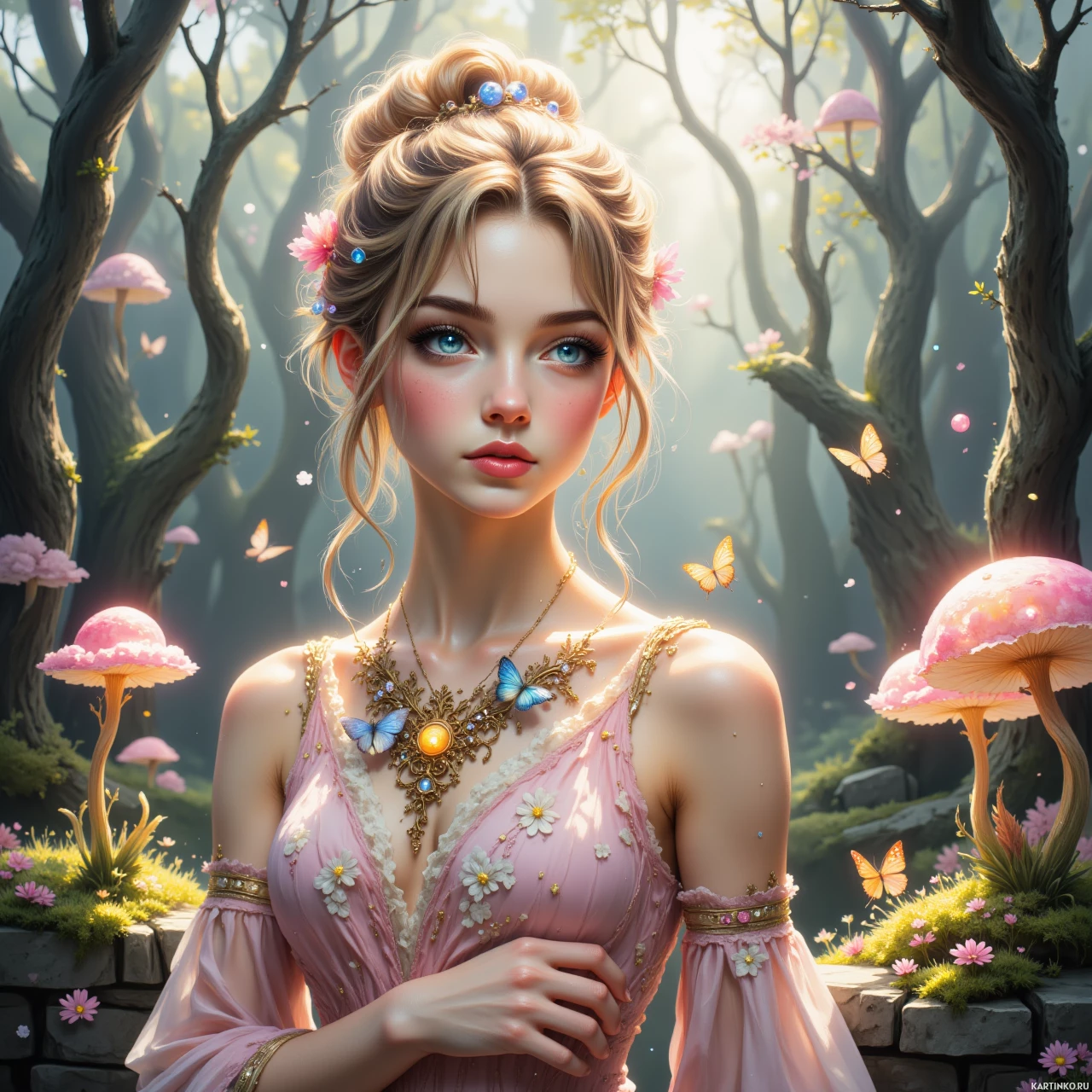 Принцесса-блондинка в волшебном лесу с грибами Больше картинок по схожим темам