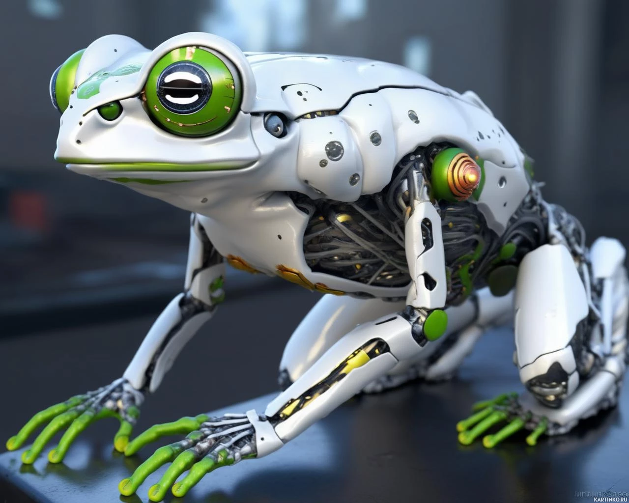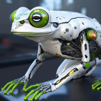 shades of green and white, mimicking the natural coloration of a frog. This robot has