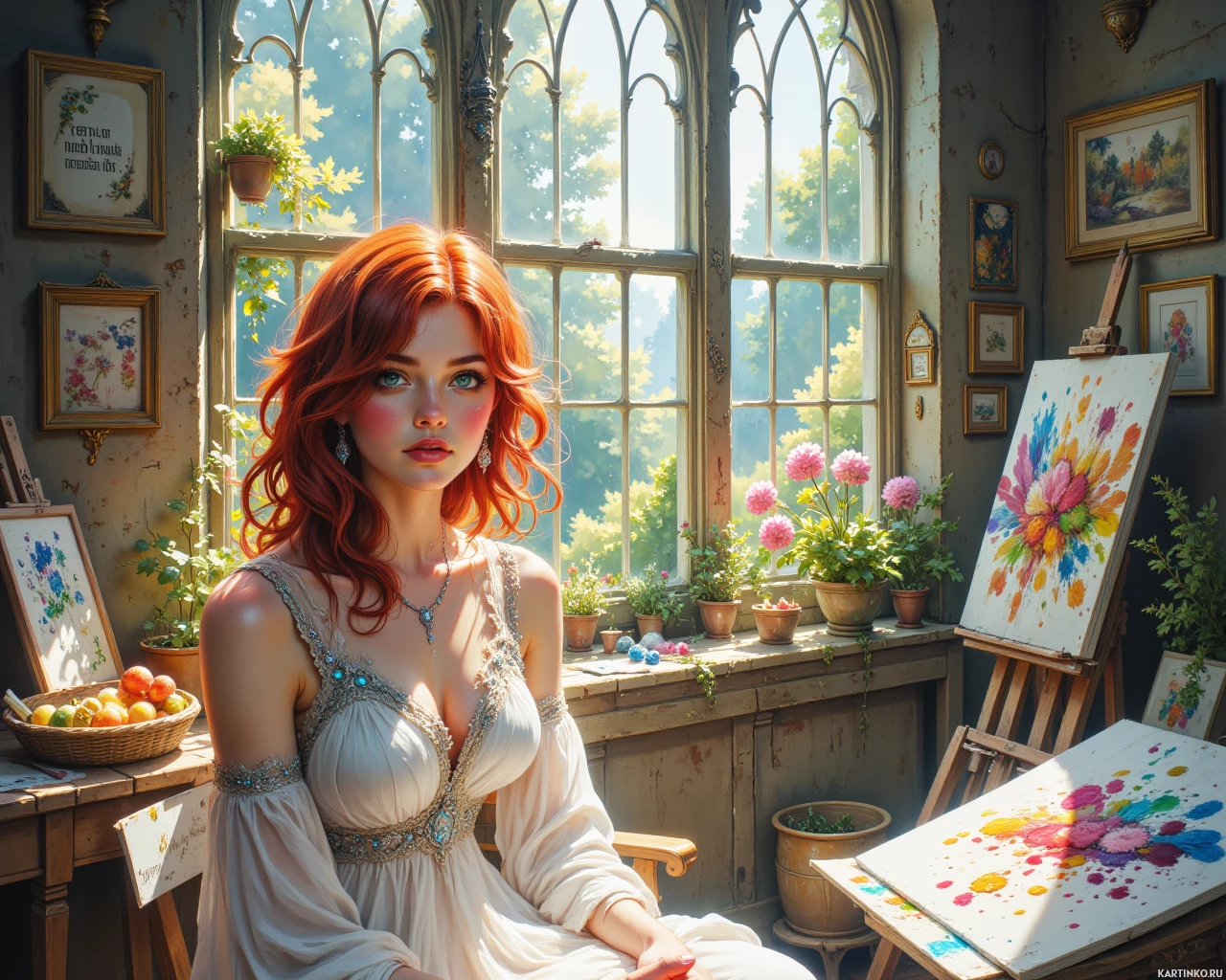 девушки | Фотки и рисунки с девушкой | Girls | Рыжеволосая муза в мастерской художника