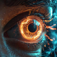 a striking contrast with the fiery eye. The overall effect is highly stylized and dramatic, evoking emotions such as passion, determination, or possibly danger.