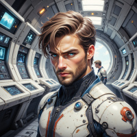 На картинке двое людей стоят в футуристичном пространстве, напоминающем командный центр. Человек слева одет в белую и серую броню с шлемом, закрытым визором. У него короткие каштановые волосы, и он смотрит вправо. На лице – серьезное выражение. Справа – еще один человек, похоже, в похожей обстановке, но смотрящий прямо в камеру с напряженным взглядом. На заднем плане – множество экранов и электронное оборудование, создающее впечатление высокотехнологичной среды.