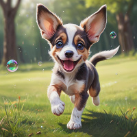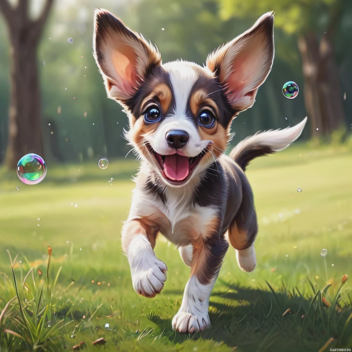 The image shows an animated corgi puppy in