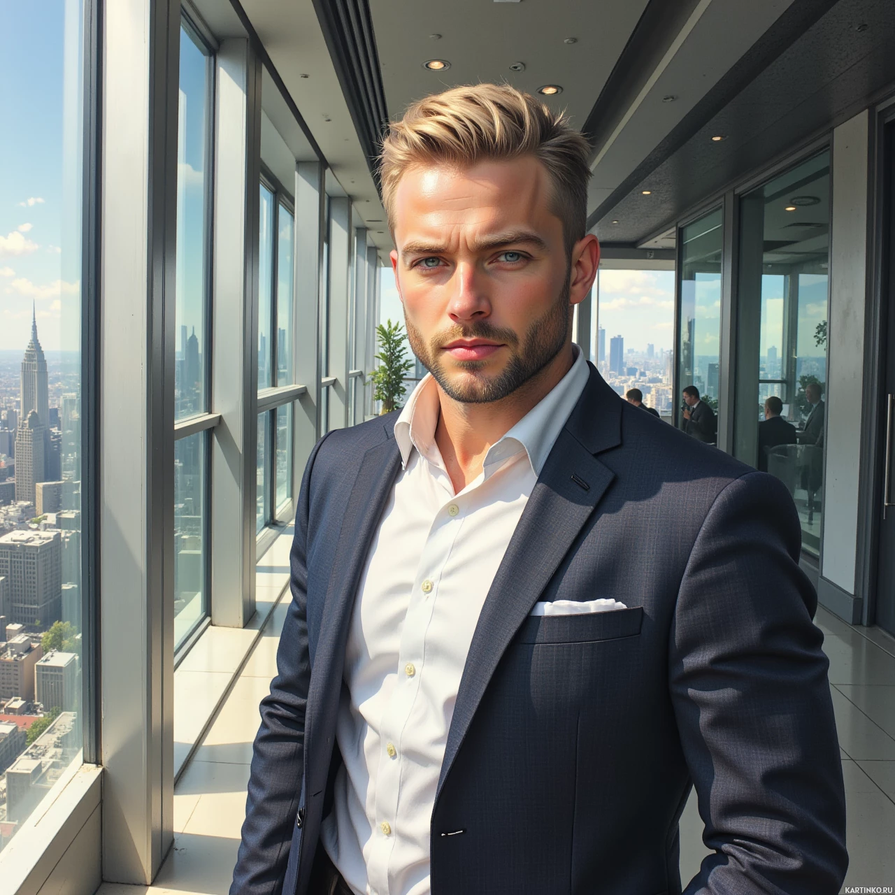 Мужчина в костюме на фоне городского пейзажа Больше картинок по схожим темам