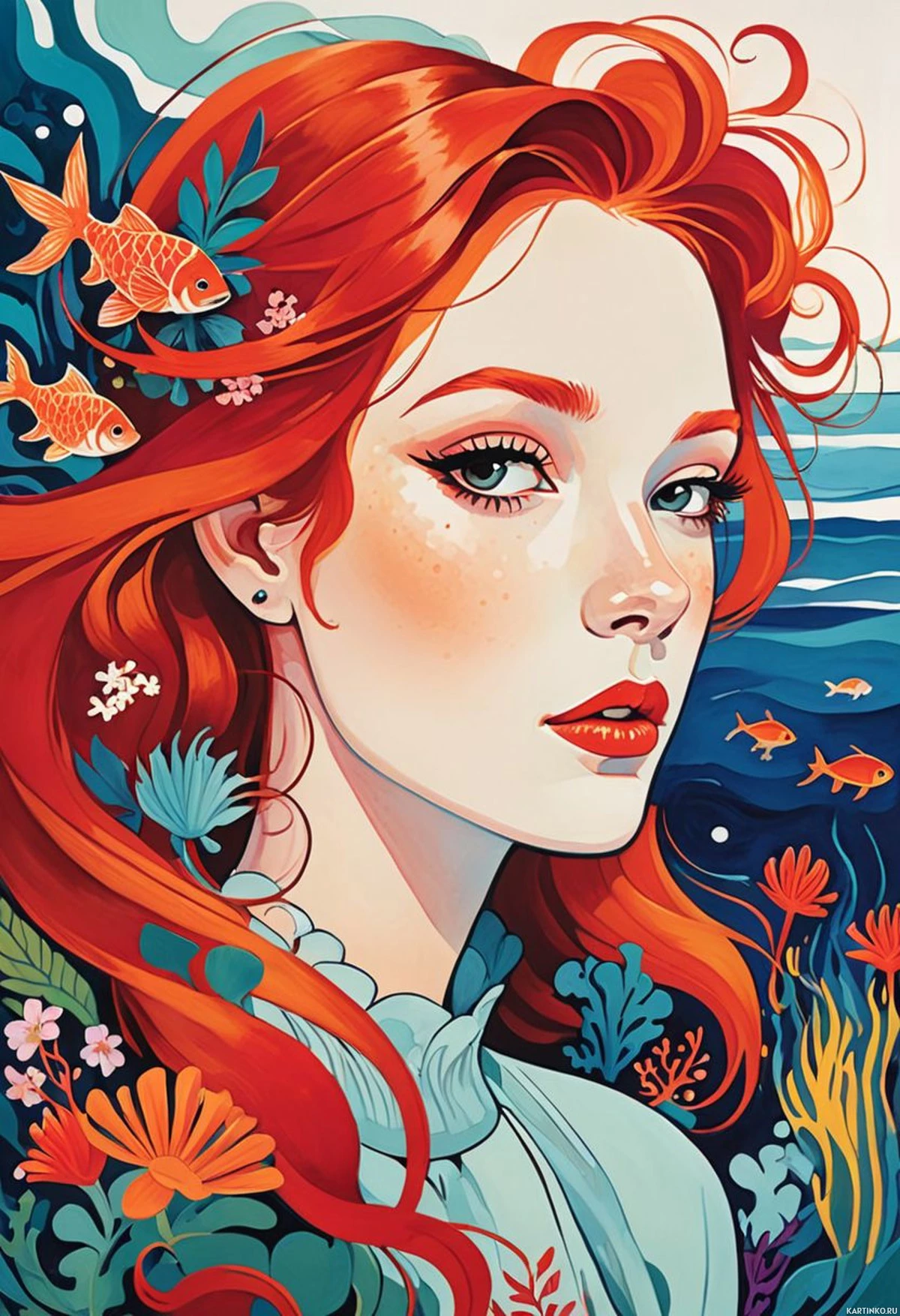 an underwater scene, which includes various types of aquatic life such as fish and corals. There are also plants and flowers that resemble those found in a terrestrial