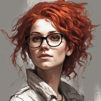 a young woman with red hair and fair skin. She has striking