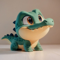 The picture shows a cute, animated crocodile. It has a friendly appearance with big eyes and a small smile. This character seems to be from an animated series or film, designed in a way that makes it look endearing and appealing to children.