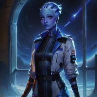 space exploration or combat, which aligns with her character within the Mass Effect universe.