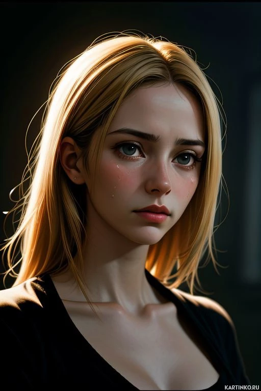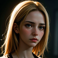 a black outfit with a high neckline, and the lighting on her face gives it a soft glow, suggesting an artificial or enhanced light source in the scene. The image is highly detailed and stylized, indicative of digital artwork rather than a photograph of