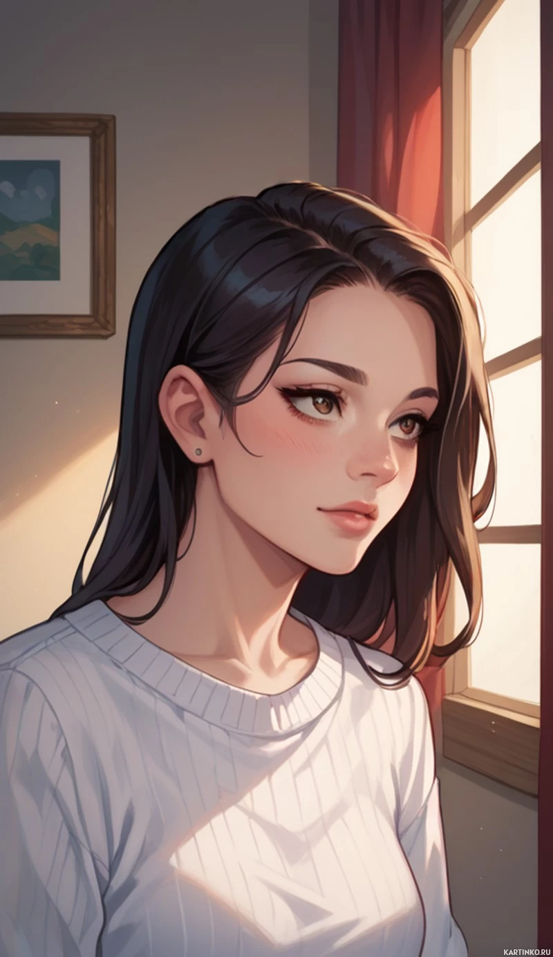 брюнетки | Скачать аватары с брюнеткой | Brunettes | Молодая женщина смотрит в окно