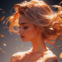 На картинке – цифровая иллюстрация девушки. У неё закрытые глаза и светлые волосы, уложенные мягкими волнами. Её кожа светлая, а на ней, кажется, топ без бретелек с золотыми деталями или украшениями, что может намекать на фэнтезийную или футуристическую тематику.