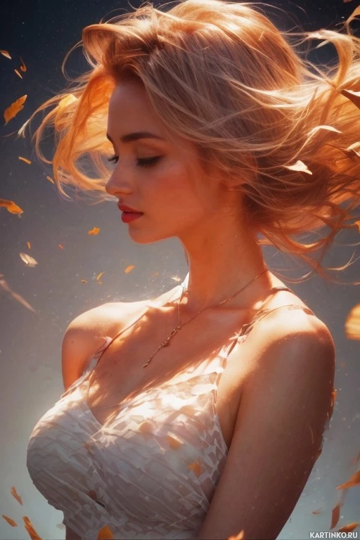 Муза с развевающимися светлыми волосами на фоне сумеречного неба Картинки с такими же тегами