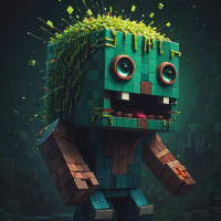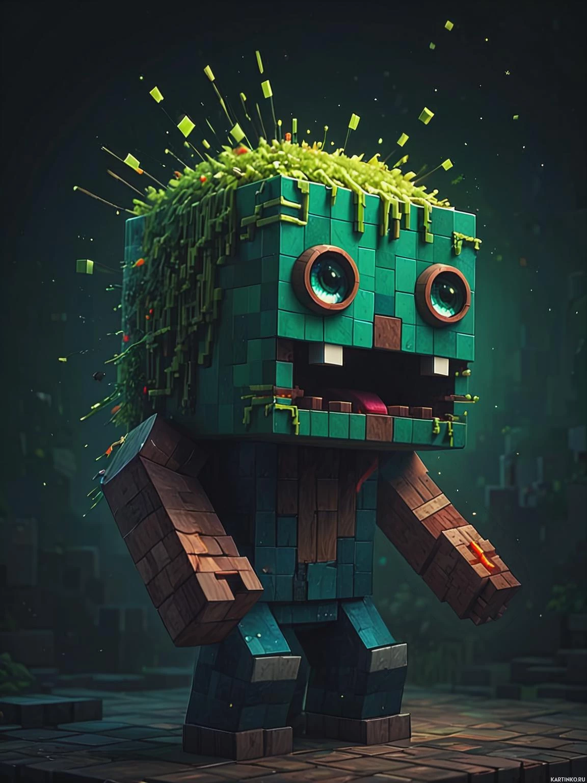 a pixelated environment that could be associated with the game "Minecraft," which is known for its blocky, pixelated graphics. The overall scene is dynamic and comical in nature.