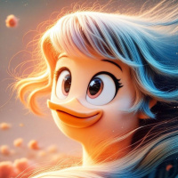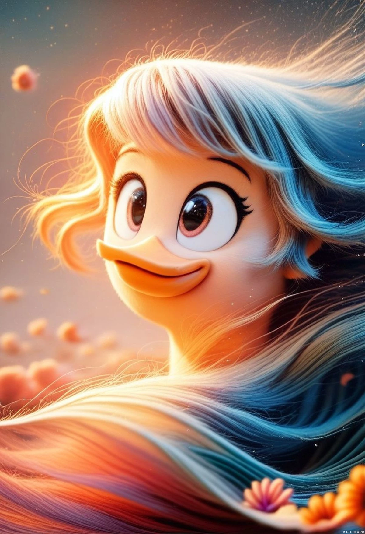The image features a character that appears to be a fusion between a duck and a human. This character has the head of a duck, complete with its distinctive orange bill, but is styled as