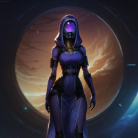 an abstract design around it. This character is likely part of the game's fantasy or science