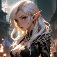 white hair. She has pointed ears typical of fantasy portrayals of elves, and her appearance is reminiscent of characters often seen in fantasy-themed