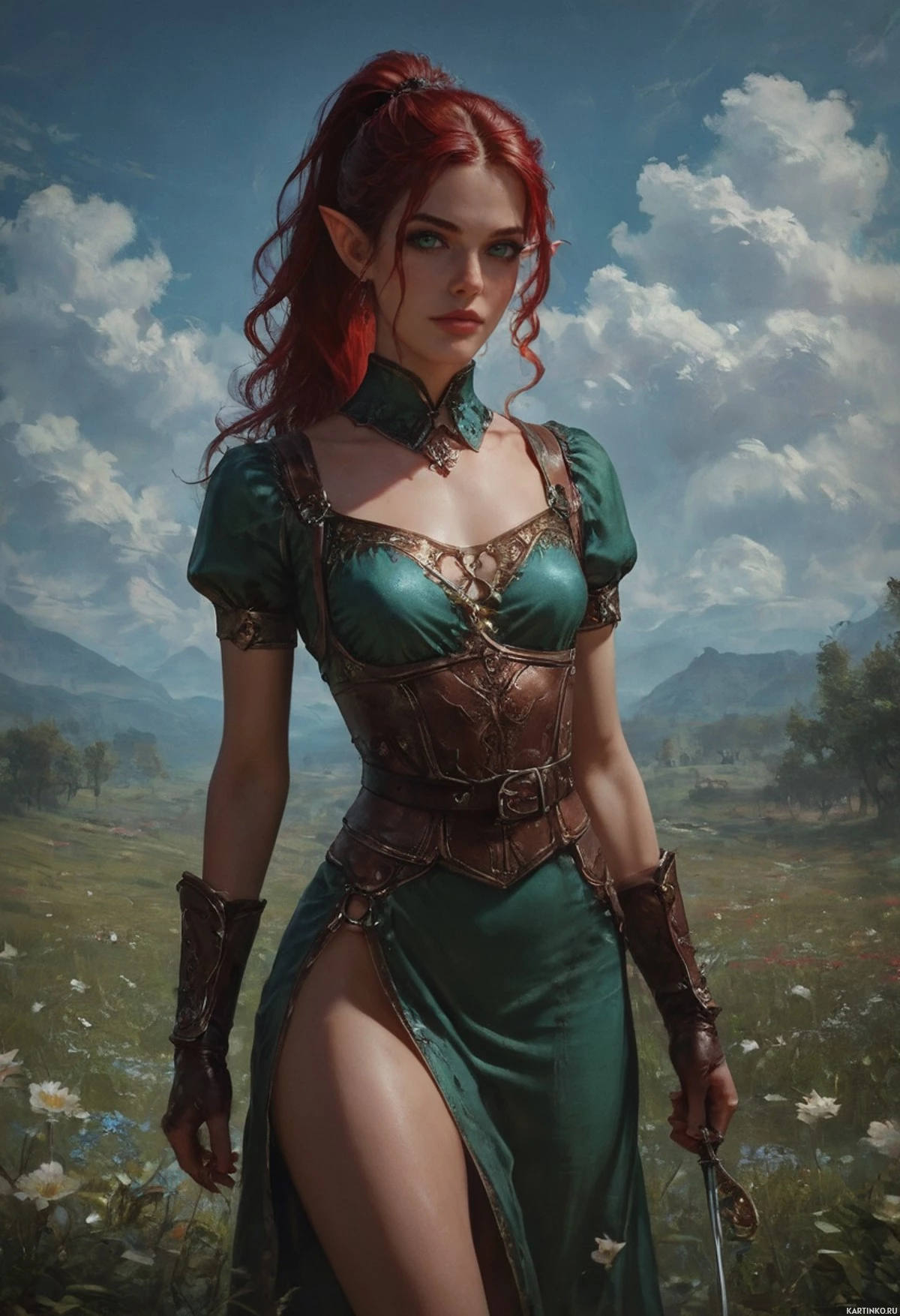 The image depicts a fantasy-themed character. This character is an elf with vibrant